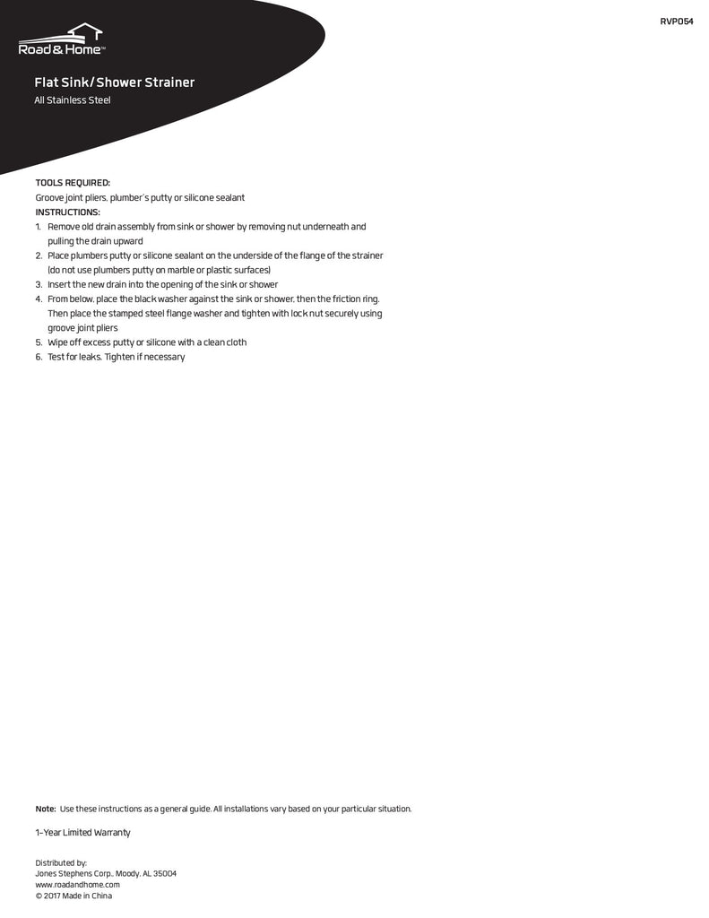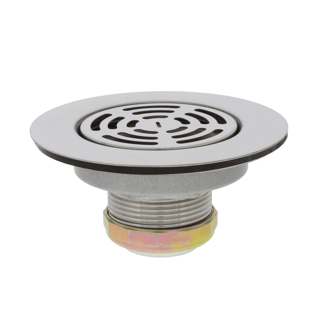 No one wants to deal with a disgusting, clogged RV & mobile home drain. Even worse, clogged or damaged drains can be expensive to clean or repair. To keep water flowing freely, drains must remain free from hair, jewelry and other items. Unfortunately, washing unwanted articles down the drain is common for many mobile home and RV owners. This 4 in. flat sink/shower strainer helps keep drains clear. The flat design of this strainer sits securely over the drain and resists movement. This strainer assembly fits most RV and mobile home showers and sinks and connects to a 1-1/2 in. tailpiece.