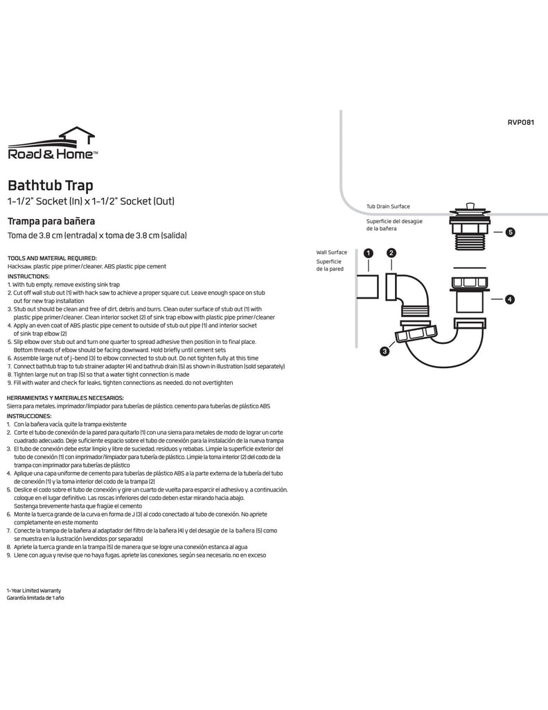 If your bathtub has been leaking, it could be a sign that your bathtub trap needs to be replaced. A trap is a common plumbing mechanism used near sinks, toilets, tubs, and other appliances to stop sewer gases from reentering your home. The trap is usually a bent pipe that captures water in the bend. This water stops incoming sewer gases but allows outgoing gases to pass through. Like other parts of your RV and mobile home plumbing system, the trap could get cracked, clogged, or otherwise impeded. When this happens, you need to act fast to repair and potentially replace the trap to keep your plumbing working properly. This particular product is made from ABS, which is a durable, corrosion-resistant plastic.