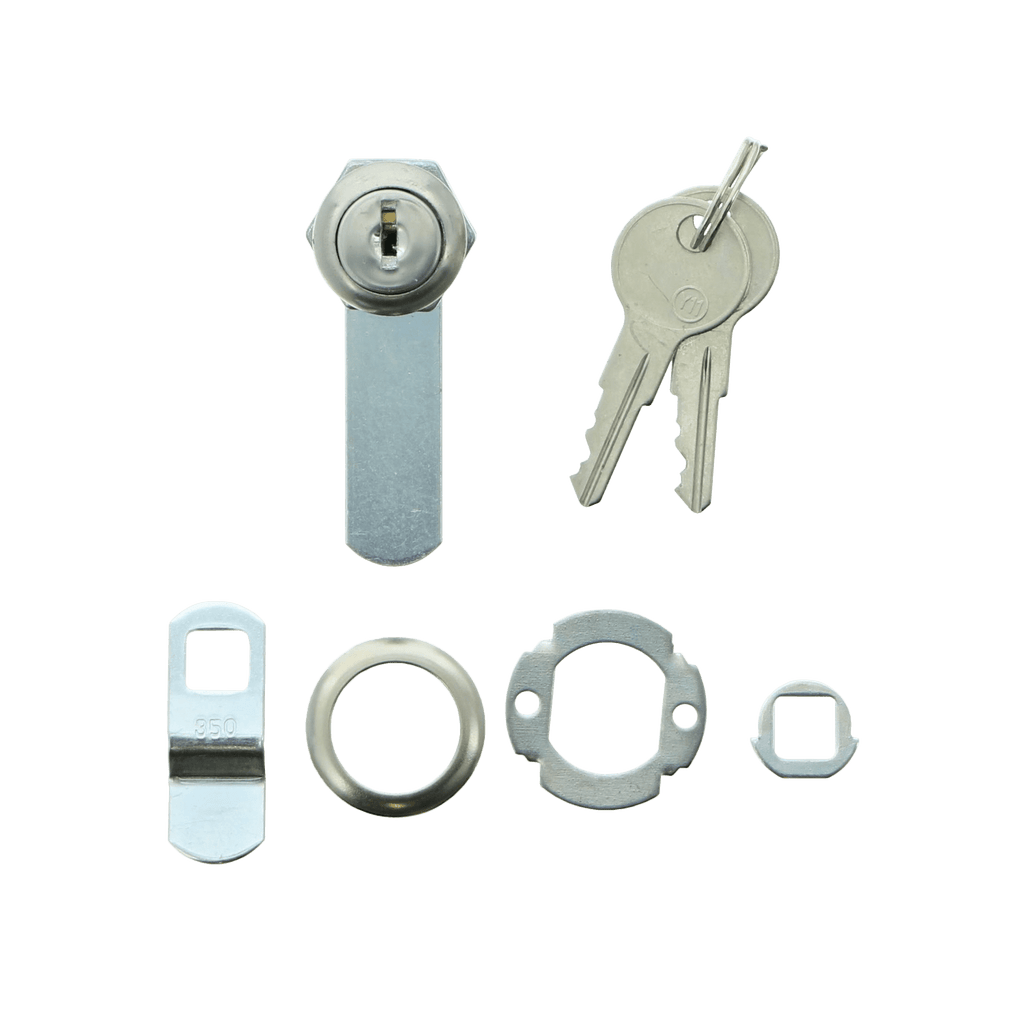 More often than not, you have packed your RV's baggage compartment full before heading out on your trip. You need the doors to stay closed and locked with everything inside, whether you are parked at the campground or you are driving down the road. This cam style lock serves as an easy solution to this scenario. Nickel plated design makes it highly durable against the elements. The assembly comes with both bent cam levers and straight cam levers to make installation or replacement easy for most compartment doors. This style of keyed lock also works for interior compartments, like drawers and cabinets, to keep items secure while the RV is moving. Whether it is a new keyed lock or a replacement for a worn or broken one, the Road & Home Baggage Door Lock is the right choice.